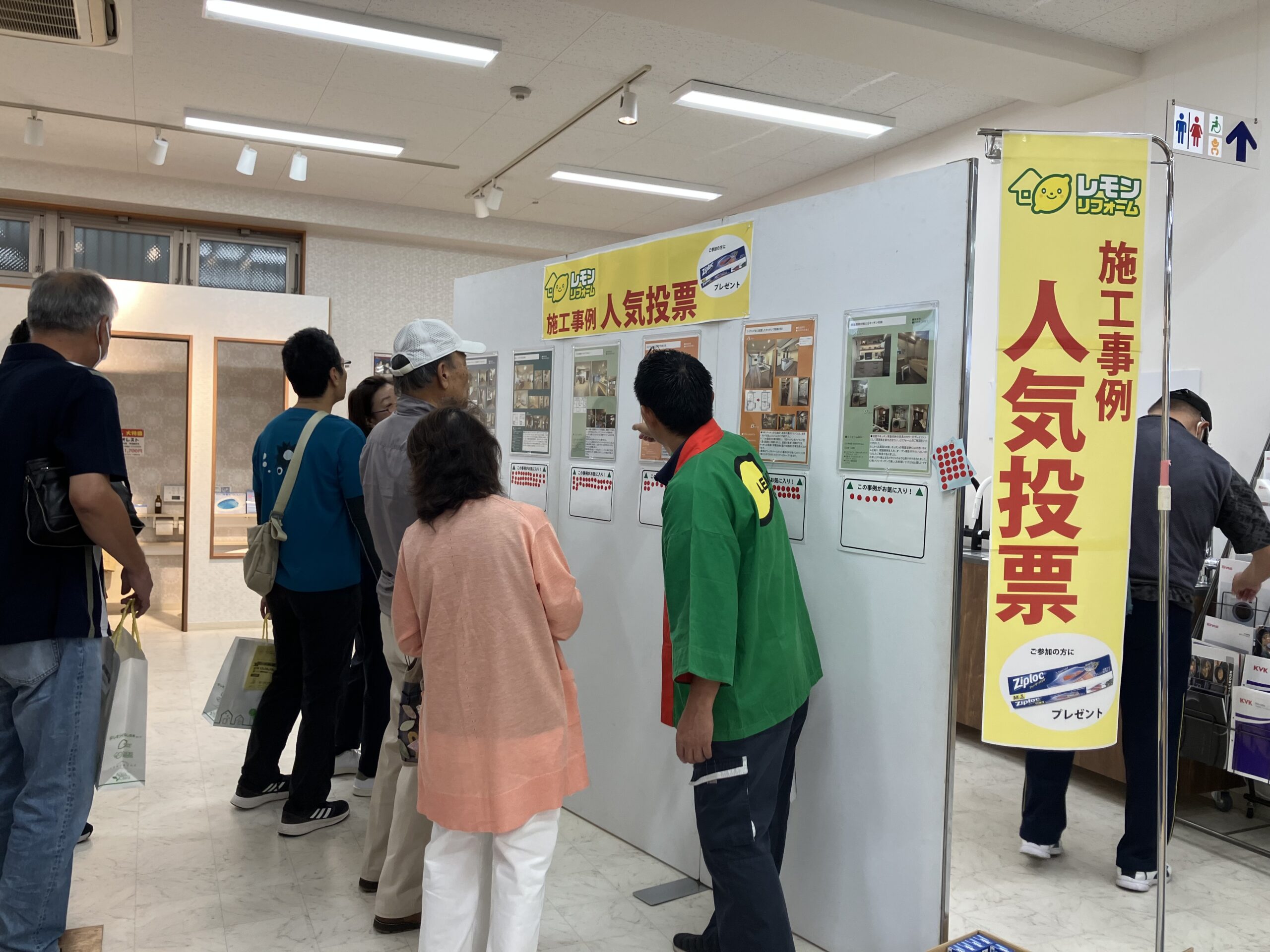 レモンリフォームでお手伝いした施工事例6種類を展示し、その中から「ご自身が気に入ったもの」「ぜひ自宅に取り入れたいもの」など、お客様の好みで一番良いと思う事例を選んでいただく人気投票を開催!