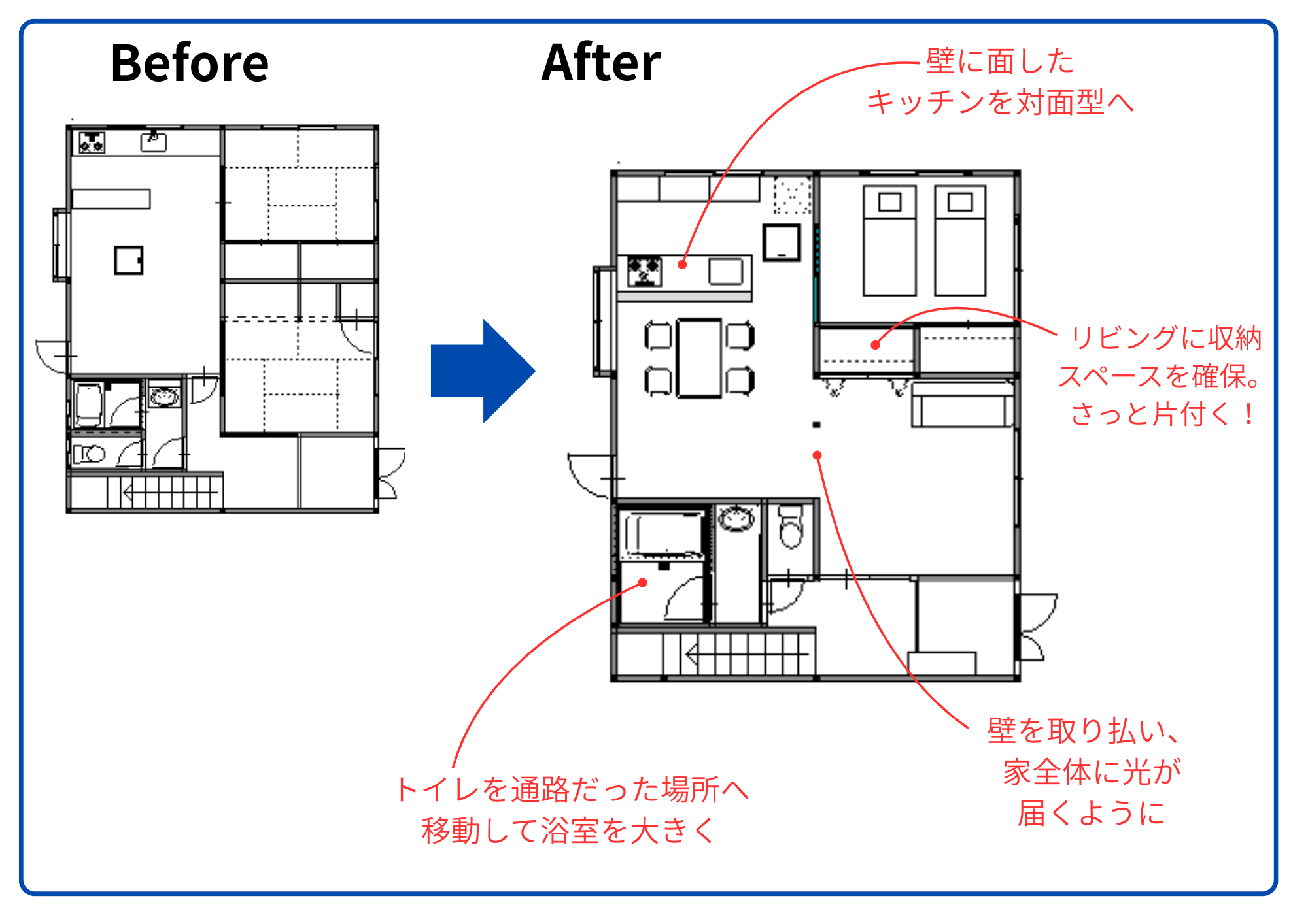 暗かったキッチンが家族の笑顔の中心になったり、寒くて危険だったお風呂が極上のリラックス空間に変わったり。