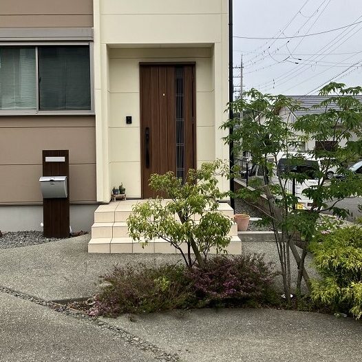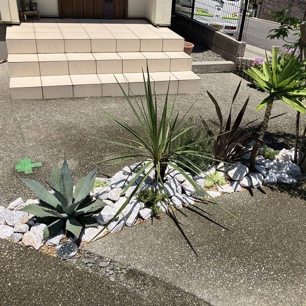 植栽の一部はお手入れがしやすいロックガーデンに造り替え、ガラッとイメージチェンジしたエクステリアが完成しました。