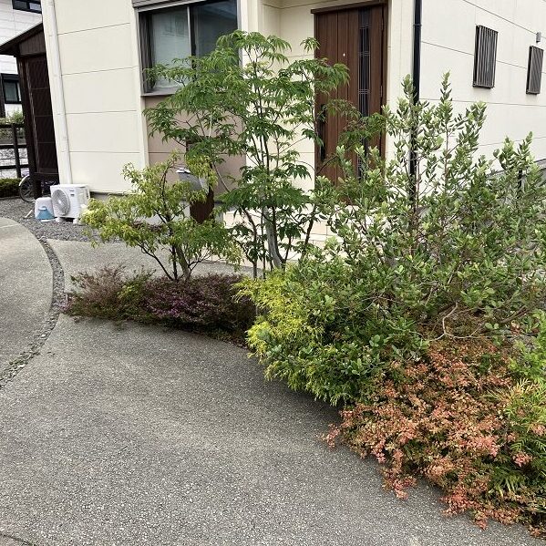 目隠し用に植えていた植栽が枯れてしまい、玄関の出入りが丸見えになってしまっているので、