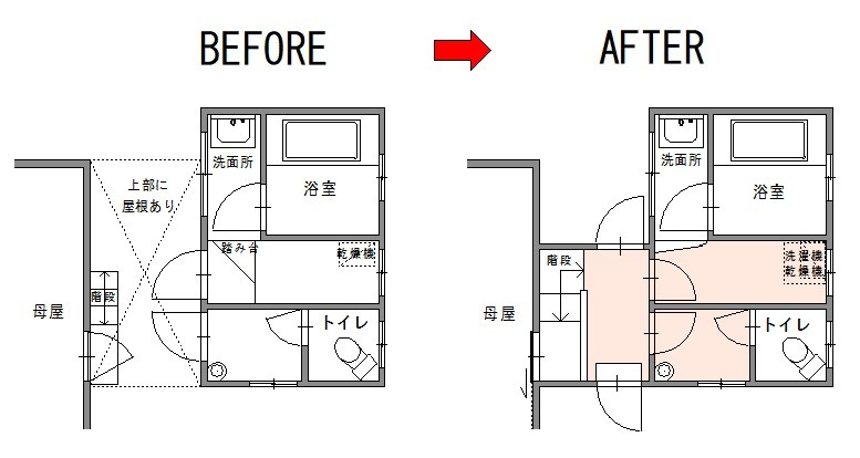 K様のお住いはお風呂やトイレなどが離れにありました。