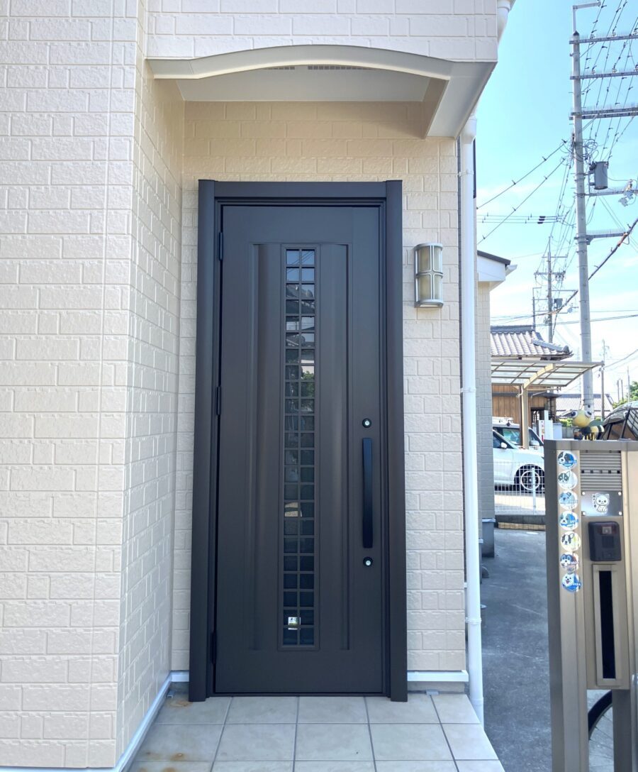 それに合わせて玄関ドアも白からブラウンに取り替えることになりました。