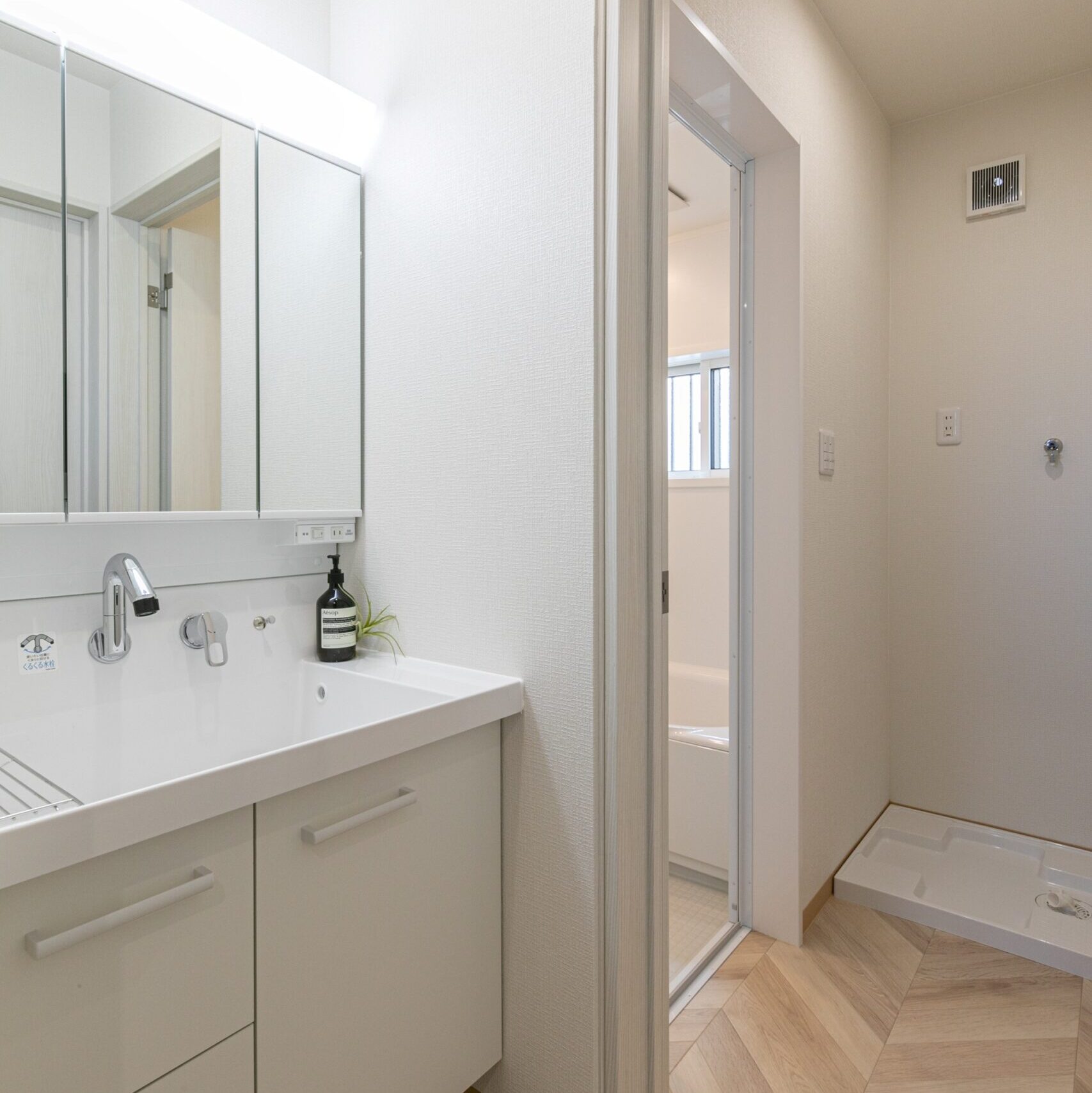 | ご採用設備 | システムキッチン:LIXIL「シエラ」255cm システムバス:LIXIL「リデア」1216 洗面台:LIXIL「ピアラ」75㎝ |