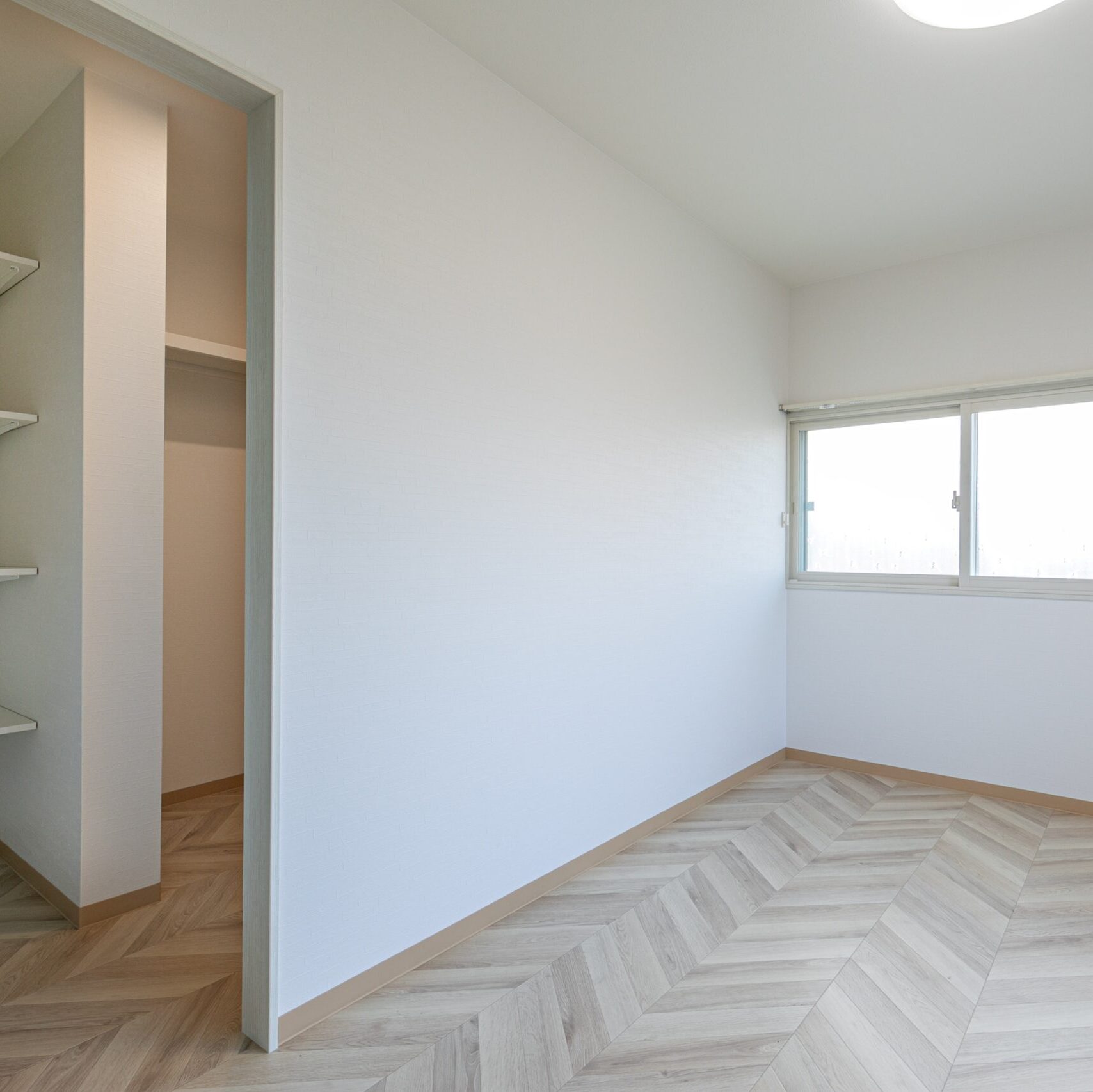 洗面台の位置をずらして冷蔵庫スペースをつくったり、押入を部屋の一部とするなど、限られた空間を広く見せるようプランニングしました。