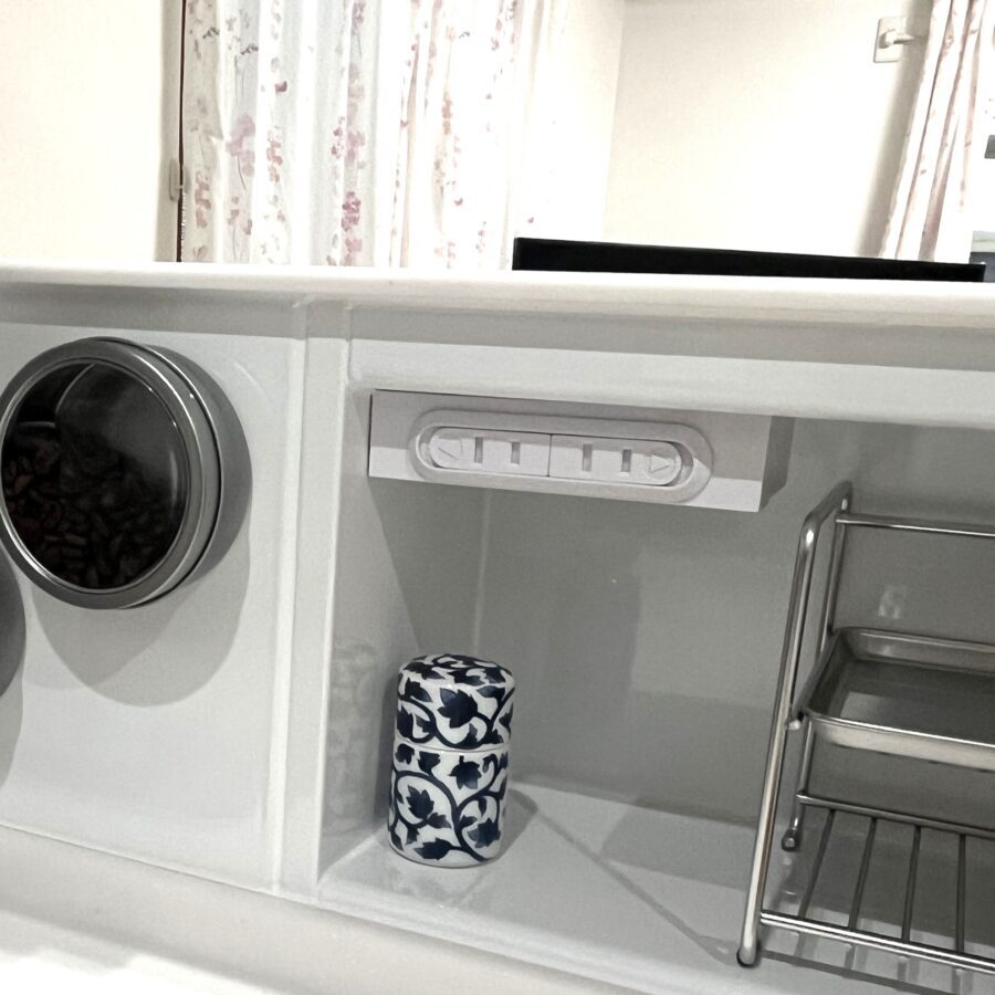 タカラの「マルチ収納対面プラン」は調理スペースが丸見えにならず、食器やスパイスなどちょっとした物を置くことができます。
