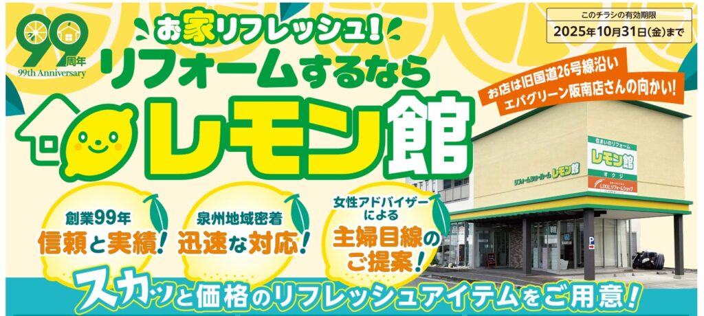 お知らせ・フェア・イベント情報 HOMEお知らせお知らせレモン館阪南店 お得情報★ 2025.10.08 お知らせフェア レモン館阪南店 お得情報★ レモン館阪南店エリアに、お得な商品や展示現品のキャンペーンチラシを新聞折込いたしました。 チラシについて詳しくはこちら チラシを見てご予約、ご来場の上、20万円以上のお見積りをしていただいたお客様に、500円分のクオカードをプレゼントしております★ どうぞお気軽にお問い合わせください。 一覧に戻る カテゴリーから探す お知らせ フェア イベント情報 その他